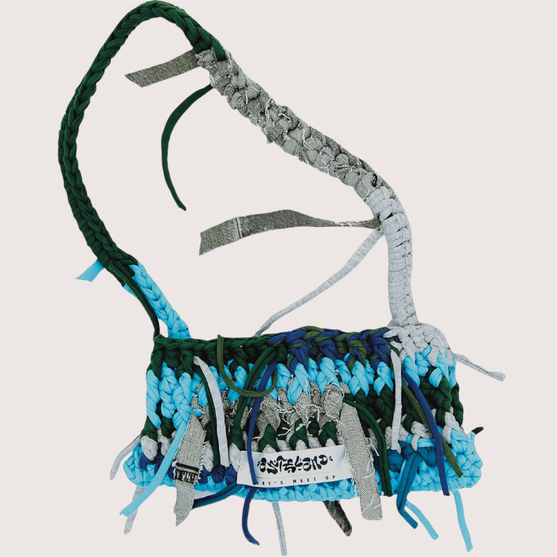 - Realizzato con filati riciclati e lacci allungati, è l'accessorio perfetto che unisce il Y2K al fatto a mano.